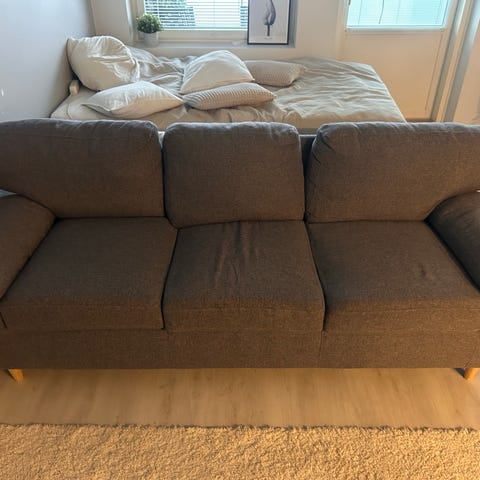 Pikaisesti naapurin puolesta myyntiin Askon kolmen istuttava sohva. Päälliset on irrotettavat ja pestävät. Valitettavasti kiire aikataulun puolesta ostaja joutuu pesemään päälliset. Täysin kunnossa, hyvä istua ja nukkua päikkärit. Leveys 210cm, syvyys 90cm. Sohvassa ei ole mitään vikaa, mutta muutamia tahroja ainoastaan. Koiratalous, mmm. 100€/tarjoa! Ei varauksia, vaan nopea nouto Päivärannasta!!!