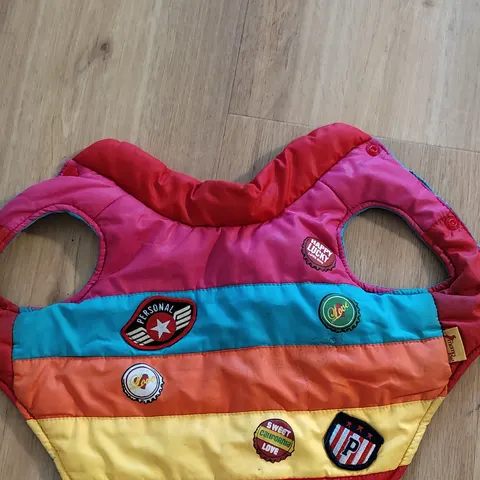 Harmaa Feel Active takki koko 25. Ollut chihuahualla. Jalkakuminauhat olleet liian tiukat, joten purettu hieman saumasta.