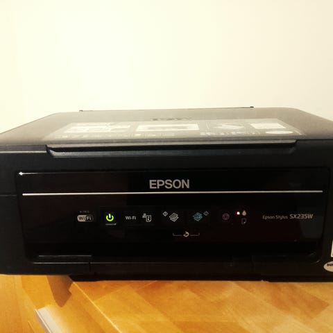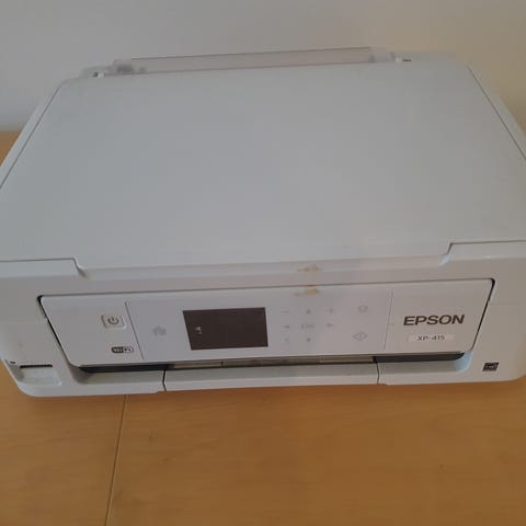 Epson XP-15000 valokuvatulostin. Musta lopussa, jokunen ylimääräinen muun värinen kasetti mukaan. Näihin saa myös hankittua uudelleen täytettäviä kasetteja.