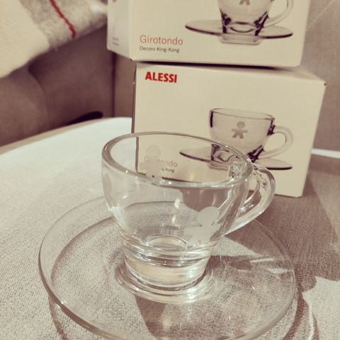 Uusi setti, jossa 6 pientä espressokuppia ja aluslautasta.