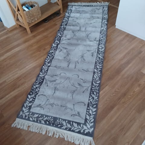 Harmaa Sotkan Lehti-matto, jossa on kukkakuvio.