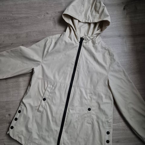 Everest - merkkinen beigen värinen sadetakki. Kokoa 152 cm. Taskut. Huppu. Takana heijastin. Vähän käytetty. Nouto, postitus tai toridiili.