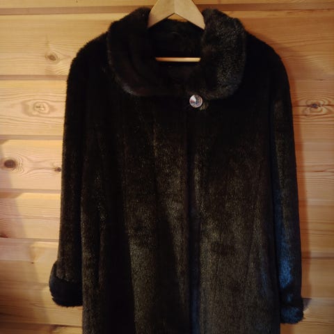 MIC merkkinen keinoturkki. Kuva ei kerro väriä ihan oikein, sanoisin, että tumma violetti tai viininpunainen.