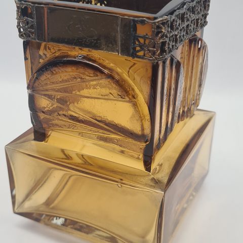 Pentti Sarpanevan suunnittelema Pitsi-lasimalja, jossa on pronssinen tai messinkinen revinnäispitsipanta.