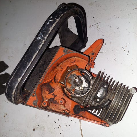 Vanha iso stihl , hyvä puristus ja hieno kipinä, tarvis hellää hoitoa ! Jotain pieniä puutteita voi olla?!