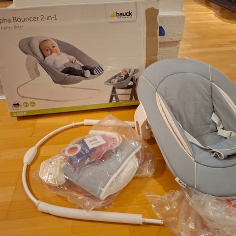 Sitteri jonka voi yhdistää Hauck syöttötuolin. Voi käyttää ihan yksinään myös. Sopiva jousto ja pienen vauvan tukiosa.