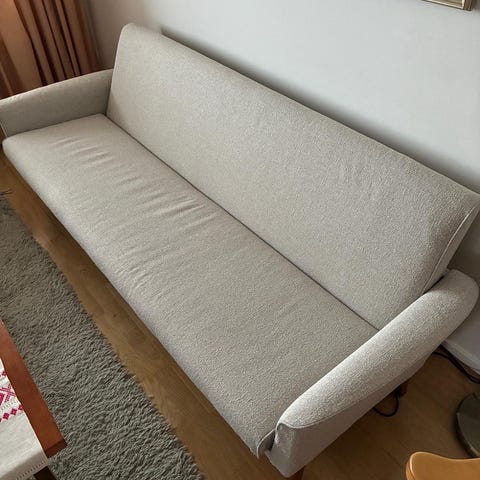 Kangas paikoin nukkaantunut mutta yleisilmeeltään siisti ja kauttaaltaan ehjä.Patjan leveys 140cm.Tässä vain muutaman kerran nukuttu/patja tahraton ja siisti. Vihreä/valkoinen.