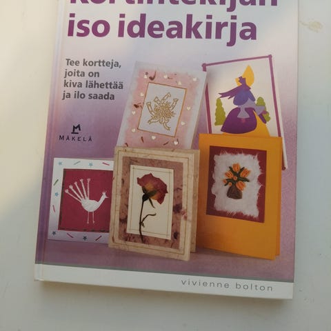 Myydään uuden veroinen kirja uudet ja näppärät kortti-ideat, jonka on tehnyt Julie Hickey! Kirja on kovakantinen ja siinä on 105 sivua! Yli 80 ideaa kauniisiin ja kekseliäisiin kortteihin! Brittiläisen korttimestarin Julie Hickeyn parhaat niksit ovat nyt myös suomalaisten kortintekijöiden ulottuvilla. Mallitöissä mm. pakotetaan kuvioita kuparilevyyn, punotaan paperia, tehdään kohokuvioita sekä hyödynnetään erilaisia leimasimia ja kuviolävistimiä. Myös malliohjeiden muunteluun on tarjolla ideoita. Omatekoiset tervehdykset tilanteeseen kuin tilanteeseen syntyvät työvaiheittain etenevien ohjeiden mukaan näppärästi. Runsaine värikuvineen ja kaavoineen kirja antaa hyvät eväät onnistuneeseen korttiaskarteluun. Heille, joilta kortteja syntyy yli oman tarpeen, tekijä antaa ohjeita korttien markkinointiin ja myyntiin. Nouto tai ostajalle toimituskulut.