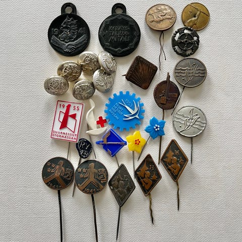 Kuvan mukainen emaloitu(pinta ehjä),lukko ehjä,kooltaan 25 x 25 mm.Postituskulut 2,75 euroa.