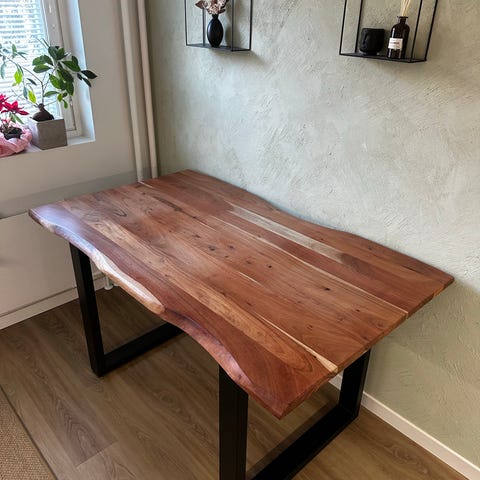 Pöytää ei ole oston jälkeen käytetty. Harmillisesti se ei mahdukaan uuteen asuntoon.