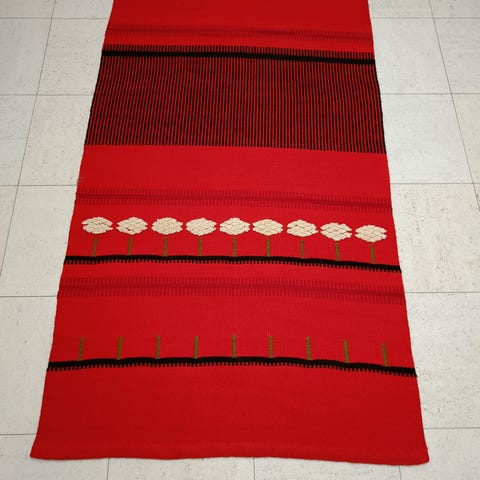 Kangaspuilla kudottu raanu,vihreä päävärinä. On uusi,ei ole koskaan ollut käytössä. Voi hyvin antaa lahjaksi.