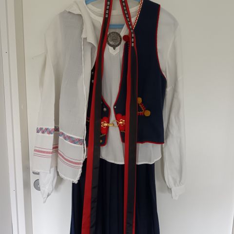 Osat: hame, liivi, essu, päänauha sekä valkoinen paita.