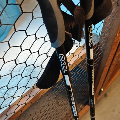 Exel Xtram sauvat, pituus 130cm, musta väri, materiaali ei määritelty. Käytettyjen sauvojen malli sopii erilaisiin ulkoilma-aktiviteetteihin. Varustettu kädensijoilla ja rannehihnoilla.