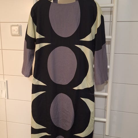 Marimekon ihana mekko on valmistettu silkki- viskoosista. Mekon väri on punainen ja se on kokoa 42. Mekossa on kukkakuviointi. Muutaman kerran käytetty, kuin uusi.