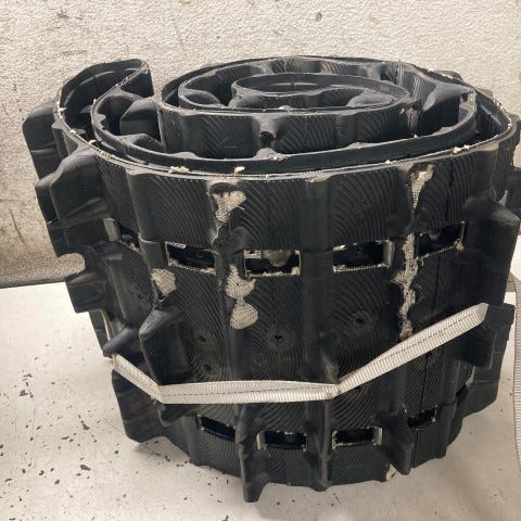 Yli oman tarpeen, vauhdissa katkennut moottorikelkan telamatto tarjolla esim. peräkärryn ajomatoksi helpottamaan kelkan kärryyn ajoa.