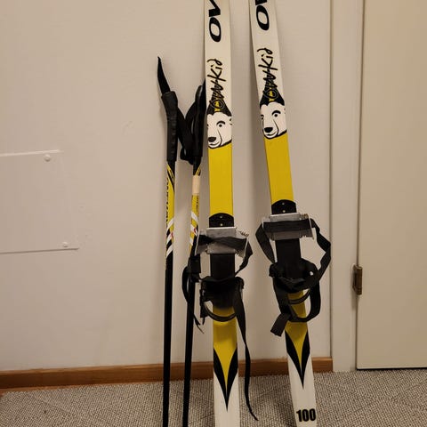 Sukset pituus 100cm ja 80cm. Ei uudet, mutta pieni lapse hiihtää näillä vielä hyvin. Siteet nnn.