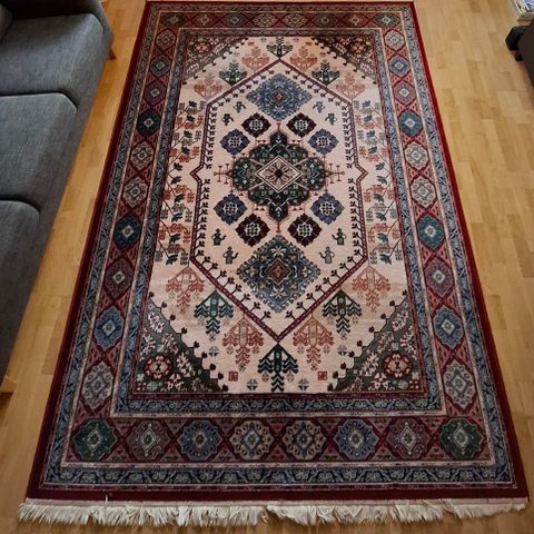 Hyväkuntoinen iso vaalean/beigen värinen villamatto. Muutamia käytönjälkiä, joista kuvat: muutamia pieniä tahroja, en ole yrittänyt puhdistaa. Lisäksi nukkaa joissain kohdissa, mutta voisi lähteä nukka-imurilla! Yleisilme kuitenkin siisti.