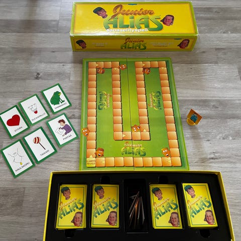 Hauska seuraleikki, yli 6 -vuotiaille ja muille. Sisältää pelimaton ja numero hyrrän. Takakannessa tahroja. Ollut koirataloudessa. Hinta 3e ja mahd.postitus, mielellään nouto