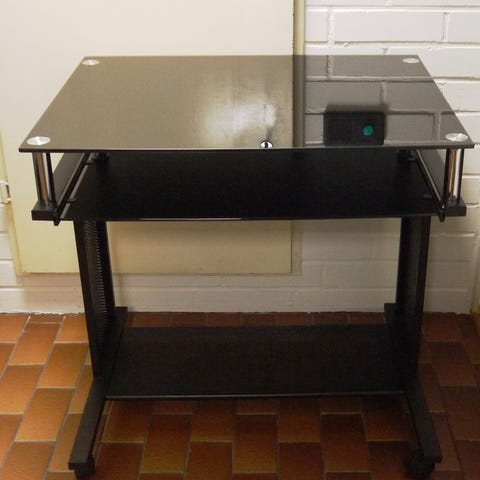 Seinään kiinnitettävä lasinen tietokonetaso.