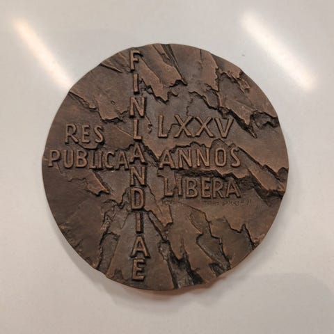 Siistissä kunnossa oleva pronssinen Turun sotaveteraanit mitallikiekko