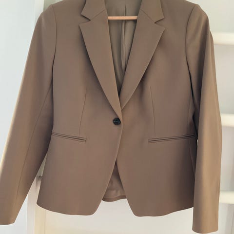 Bleiserissä on yksirivinen napitus ja klassinen leikkaus.