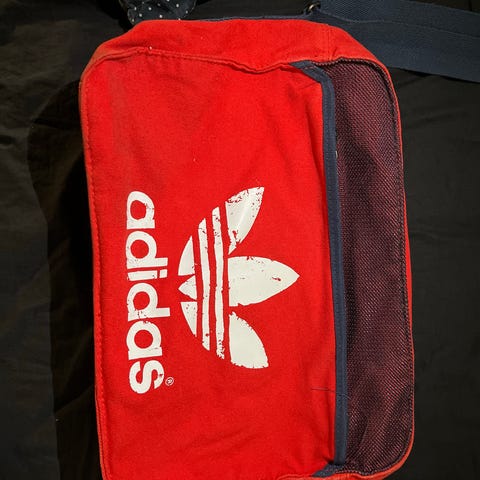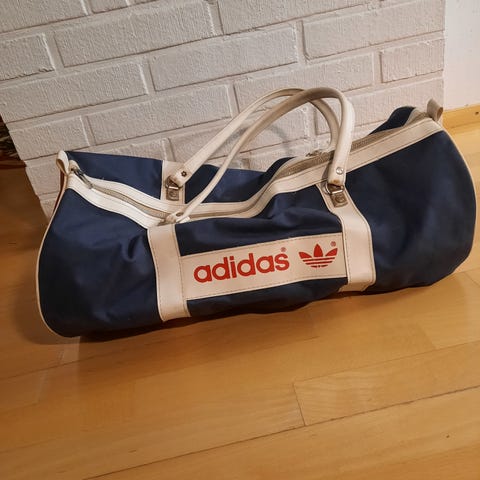 Myydään kasariajan aito Adidaskassi. Kulumia pinnassa vähäisesti. Mitat lev. n.45cm ja korkeus n.39cm. Postikulut 9€.
