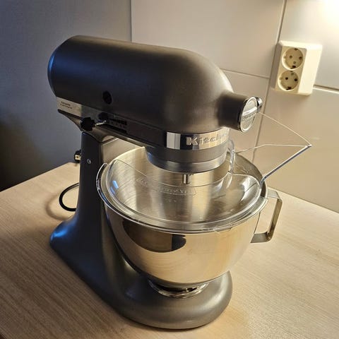 Elämää nähnyt mutta toimiva KitchenAid-yleiskone (malli K5SS) aktiivisemman leipurin käyttöön.