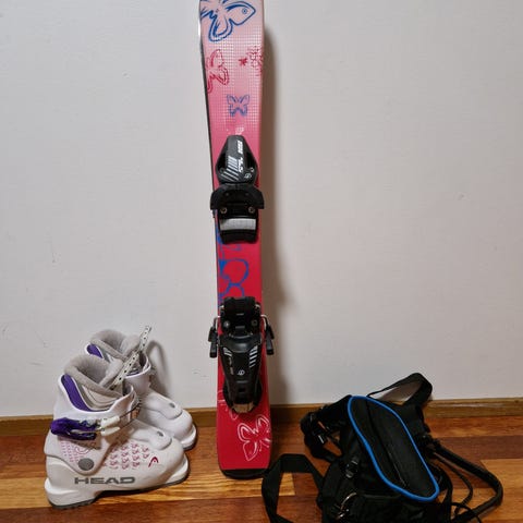 Laskettelusukset ja monot lapselle/nuorelle. Sukset 160 cm, Rossingol siteet, monon pohjallinen 25 cm.