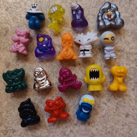 Gogos Crazy Bones keräilyhahmot + metallinen keräilylaatikko. Kunto erinomainen, vähäisellä käytöllä.