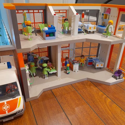 Playmobil Eläinsairaala leikkisetti sisältää eläinpotilaita, lääkintätiloja ja leikkihahmoja. Setti on suunniteltu lasten leikkeihin ja se sisältää useita yksityiskohtia, kuten eläimiä ja sairaalaympäristön elementtejä.