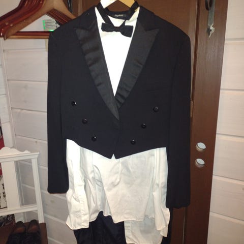 Mukaan siis takki, paita, housut ja frakkikaulus yms.