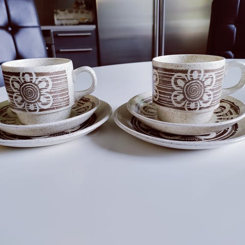 Myydään Biltons englantilaiset kahvikupit ja lautaset, 5 kuppia ja 6 lautasta.