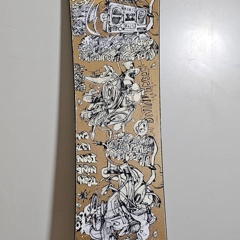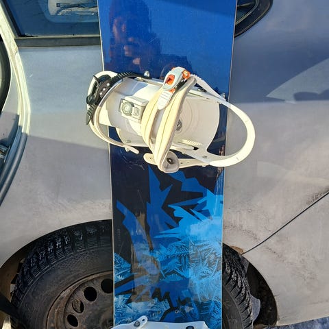 Genesis Special 155 lumilauta harmaalla ja oranssilla värillä. Lauta on varustettu siteillä ja sopii lumilautailuun.