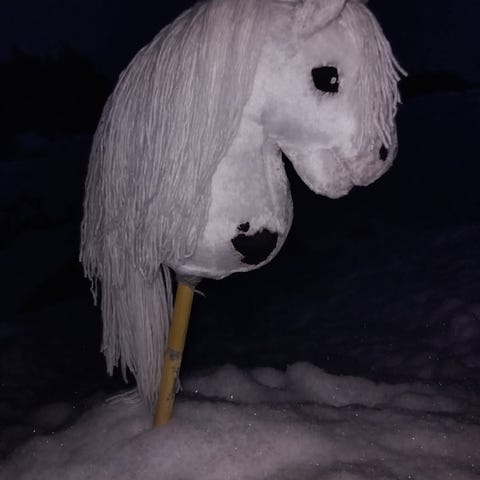 Käsityönä tehty keppihevonen
