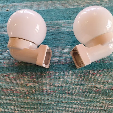 Kaksi vanhaa käytävä/seinävalaisinta posliinikannalla,kork.21cm