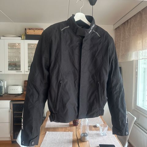 Käytetty mutta ehjä ja oikein asiallinen miesten ajotakki! Suojat olka-ja kyynärpäissä sekä selässä tasku selkäsuojaa varten. Koko 56 ja vastaa hyvin totuutta, 180/88 mitoilla on väljä.