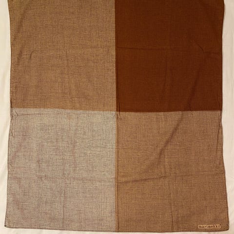Marimekon topattu kaulaliina, huivi tai shaali. Lämmin ja muhkea. Luonnonvalkoinen ja lämmin beessi Pioni-kuosi.