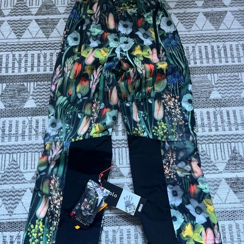 Molo merkkiset laadukkaat mustat toppahousut / talvihousut. Polvissa ihan vähän kulumaa, ei mielestäni haittaavasti ja muutoin hyvässä käyttökunnossa edelleen. Käytetty meillä ilman henkseleitä, enkä muista oliko näissä sellaiset. Nouto Kalasatama, Helsinki tai toridiili.