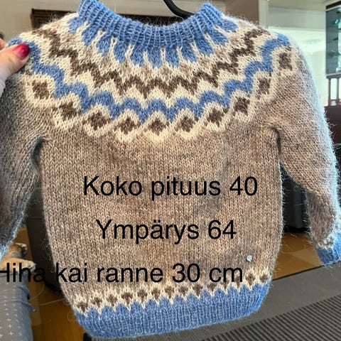 Uusi, käsintehty villapaita. Lanka Novita Seitsemän Veljestä + Sandnes Peer Gynt. Villapesu 30°. Pehmeä, ei kutita (käsitelty villan huuhteluaineella). 70€ + postikulut, maksu etukäteen tai ToriDiili.