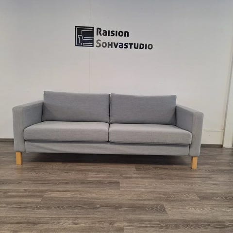 Siisti ja siro 3-istuttava sohva kahdella irtonaisella niskatuella.