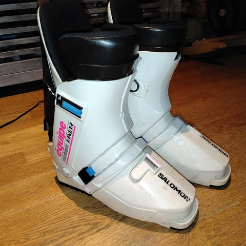 Vähän jo elämää nähneet, mutta vielä toimivat Salomonin monot. Lähinnä siis pinnassa naarmua/käytön jälkeä, mutta muuten ehjät.