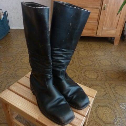 Suomen armeijan saappaat, mutta varret lyhennettyinä.