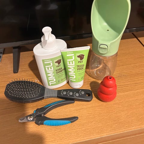 Kolme suihketta koirakotiin, kaikissa jonkin verran jäljellä