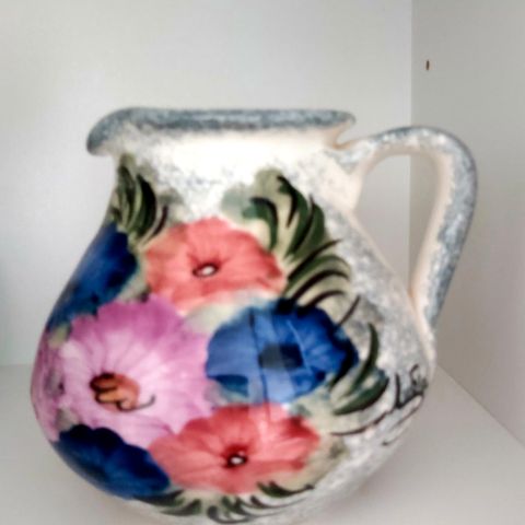 Myydään vintage kukkakuvioinen emali kansi. Käytönjälkeä on. Halkaisija 22cm.