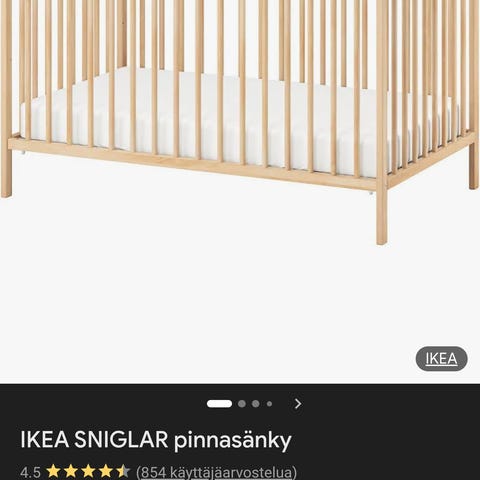 Ikean Sniglar pinnasänky, mukaan saa halutessaan tähtikuvioisen reunapehmusteen ja patjan. Patjan kanssa käytetty aina patjansuojaa.