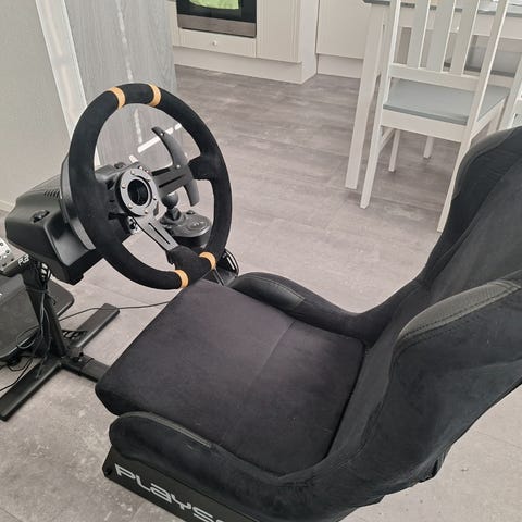 Myydään noin 1kk käytetty Trakracer ajotuoli. Mukana tule tuoli alhaalla olevat metalli kehykset sekä tuolin liukusäädin. Selkänoja säädettävä.
