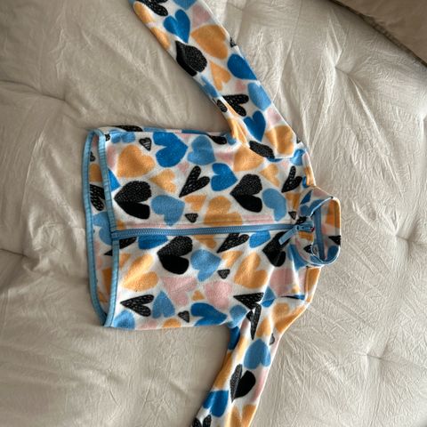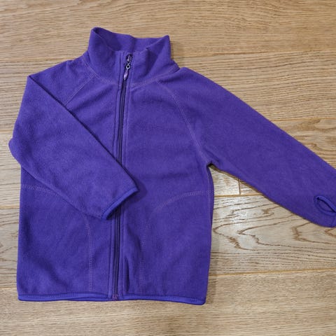 Lupilun fleecetakki, tyypillistä nukkaa pinnassa, ihanat vaaleanpunaiset yksityiskohdat mm vetokejussa, taskuissa ja hupussa. Hihoissa hieman tummentumaa. Ei reikiä