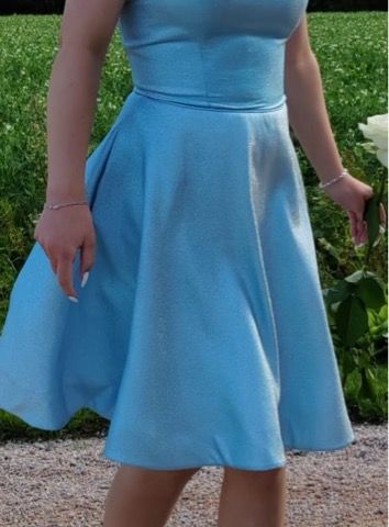 Dazling by Zazabella vaaleansininen rippi/juhlamekko. Koko xs. Säädettävissä nyöreillä. Selkäosuuteen tulee neppareilla kiinnitettävä kaistale, jolloin iho ei näy.
