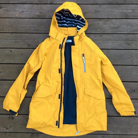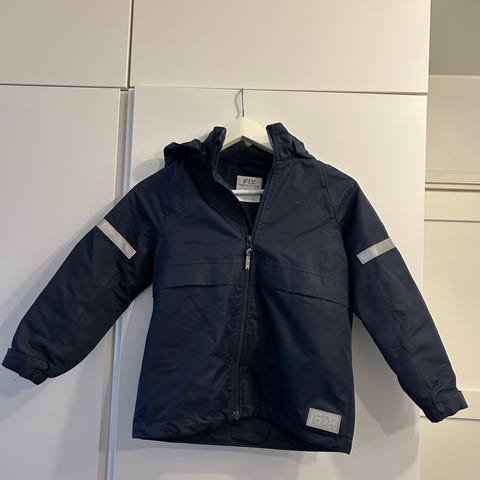 Lindexin Fix-merkkinen tummansininen välikausitakki. Pitää hyvin tuulta ja vettä. Edessä ihan super pienet kulumajäljet, niistä kuva.