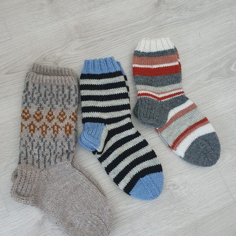 Nalle-langasta neulottuja villasukkia. Koko 37-38. 35€/kpl